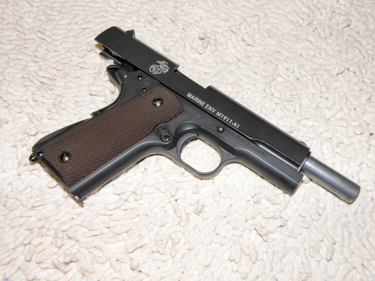 ειμαι κατοχος ενος 1911 της ΤΜ και το προβλημα εκτος του πλαστικου που σου ειπαν τα παιδια ειναι πως χρειαζεσαι αλλα 130 ευρω να το κανεις ολο μεταλλο και πως μετα απο τις χρησεις το Slide εχει φαγωθει και δεν σταματαει οταν τελειωνουν οι μπιλιες