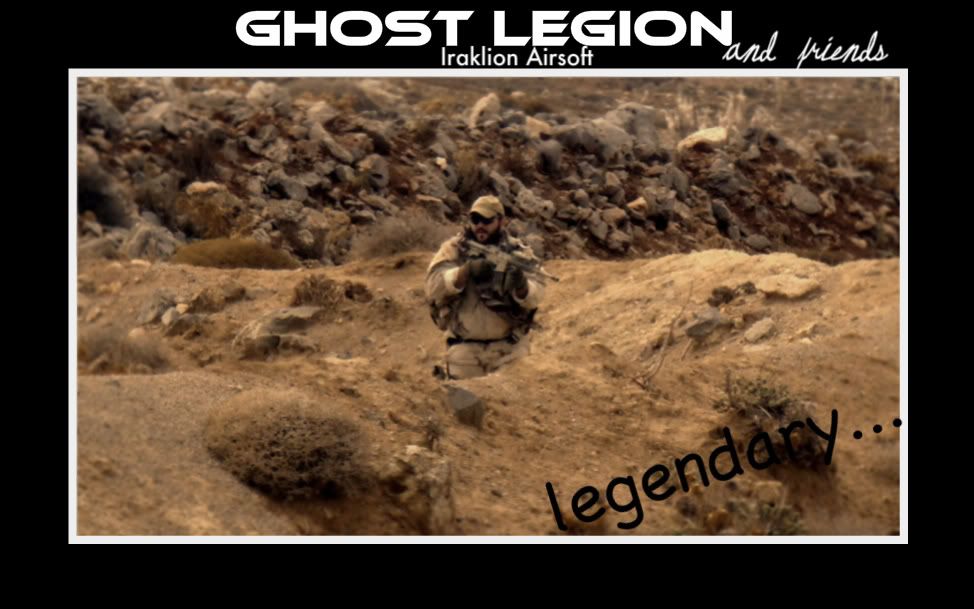 Φίλοι airsofters, έχω την χαρά να παρουσιάσω μέσα από το φόρουμ σας,την ομάδα αεροσφαίρισης GHOST LEGION. H ομάδα μας δημιουργήθηκε πριν περίπου ενάμιση χρόνο από δύο φιλαράκια, τους Μάνο και ο Γιάννη, ή αλλιώς xalias και kortesis. Το ντουέτο σιγά-σιγά μεγάλωσε κι έτσι γεννήθηκε η GHOST LEGION. Σήμερα, περισσότερα από 20 άτομα, που μας συνδέουν η φιλία και το πάθος για τo sport, ανταλλάσσουμε BBs σε εβδομαδιαία βάση.